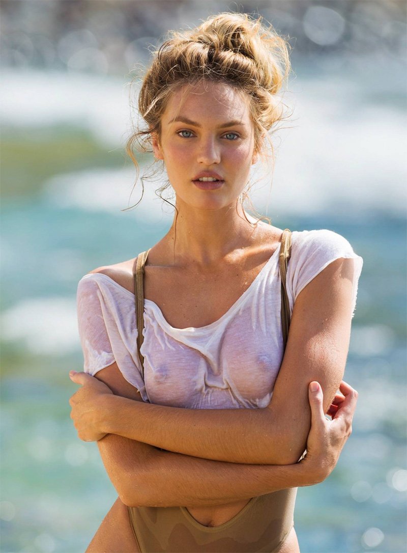 Candice swanepoel outtakes in wet tight white t shirt