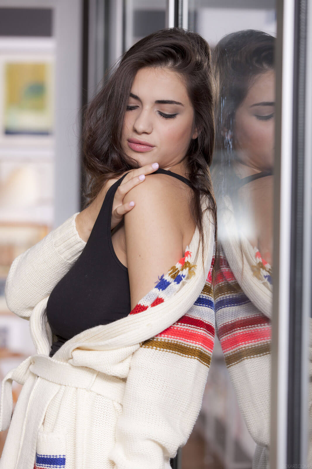 We chase out girls like her. Young, beautiful and busty. And off-course better if they are dareful to be naked. The delectable brunette removes her t-shirt and panties, revealing her amazing tits and sexy pussy. Enjoy!