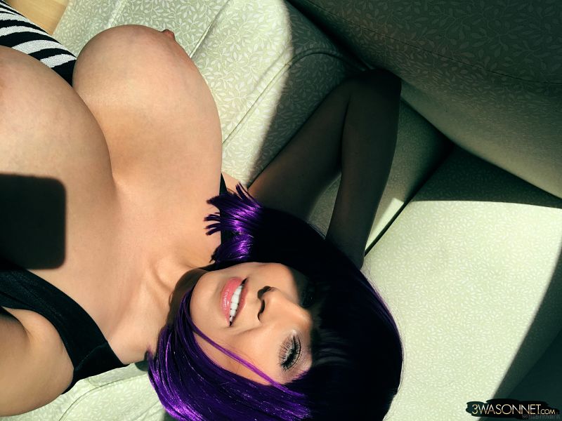 Sexy women Ewa Sonnet with different hair style, in purple, continues to give pleasure showing off her big naturals! ShareSharePin It