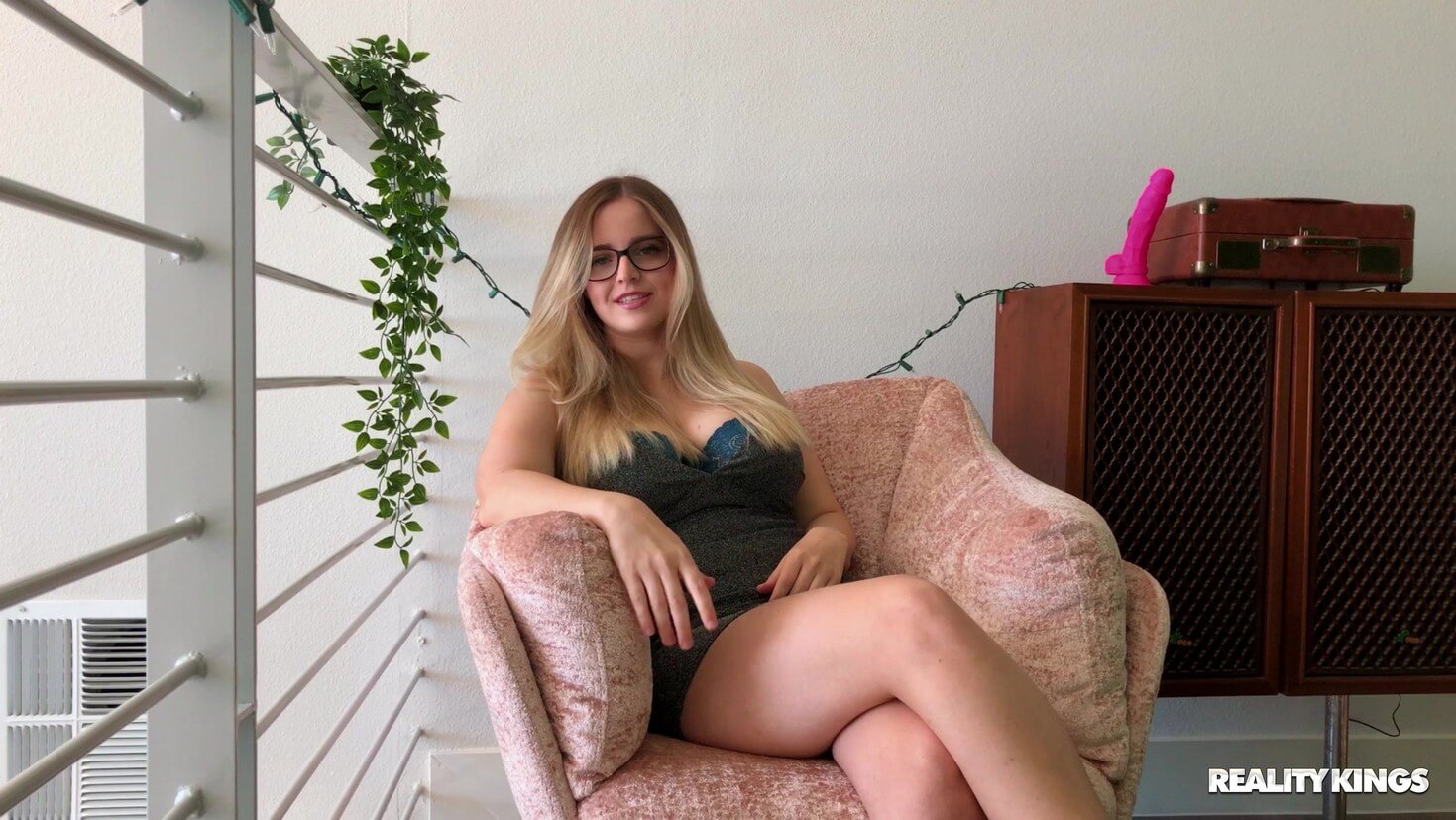Blonde babe Codi Vore has a lot more to share than those gorgeous massive tits! She takes that off too and fucks her big pink dildo cowgirl style while sucking on yet another dildo. Then she puts the dildo in between her tits and titty fucks it. She finishes her masturbation session off with a vibrator.